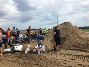 Thorp says they are probably good for today on the amount of people (about 20 to 30) sandbagging at the site, just north of Grand Pass on Route T. He said they won’t bag again until they see a bad forecast for the river. He says if anybody wants to volunteer to help, call him at (660) 641-2313.