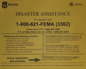 When you register, you will be given a FEMA registration number. You are urged to write it down and save it, because you will need that number whenever you contact FEMA.