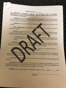 During a public hearing, no comments were made regarding a draft of a zoning ordinance relating to off-street parking in residential districts at the meeting of the Marshall City Council on Monday, August 5.