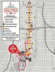 Officials say there will be parking restrictions along and around the parade route. These restrictions go into effect at noon on Tuesday, February 4, and extend into the late evening on Wednesday, February 5. Cars parked in temporary no-parking zones and on the interstate will be relocated. If your vehicle has been relocated, you may call (816) 513-0688 for the location. Personal expenses may be incurred if you need to retrieve your vehicle.