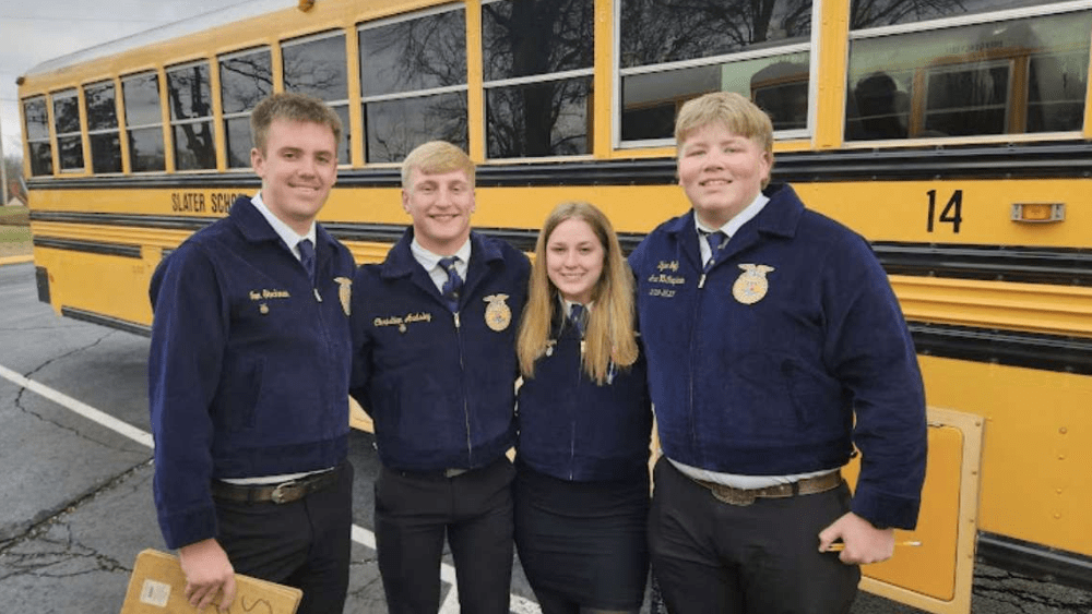 Wylee Goff (pictured on the far right) a 2023 graduate of Slater High School and an active member of the Slater FFA Chapter, has achieved remarkable success through his dedication and hard work over the past four years.