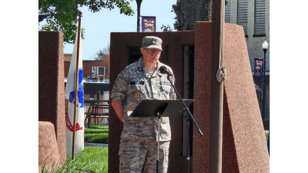 Following the presentation of the colors, Commander of the local Saline County Composite Squadron, Captain Sharae Kelley, delivered her speech and encouraged everyone to remember the sacrifices of the men and women who served.