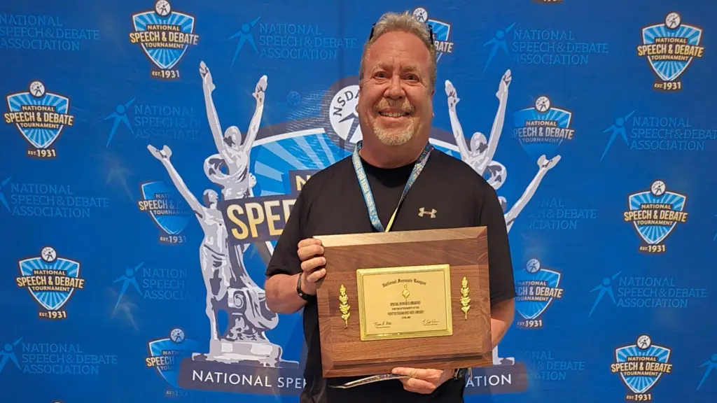 Marshall High School speech and debate coach Paul Gieringer received his Ninth Diamond Award at the 2025 National Speech and Debate Tournament in June 2025 in Des Moines, Iowa. (Photo submitted)