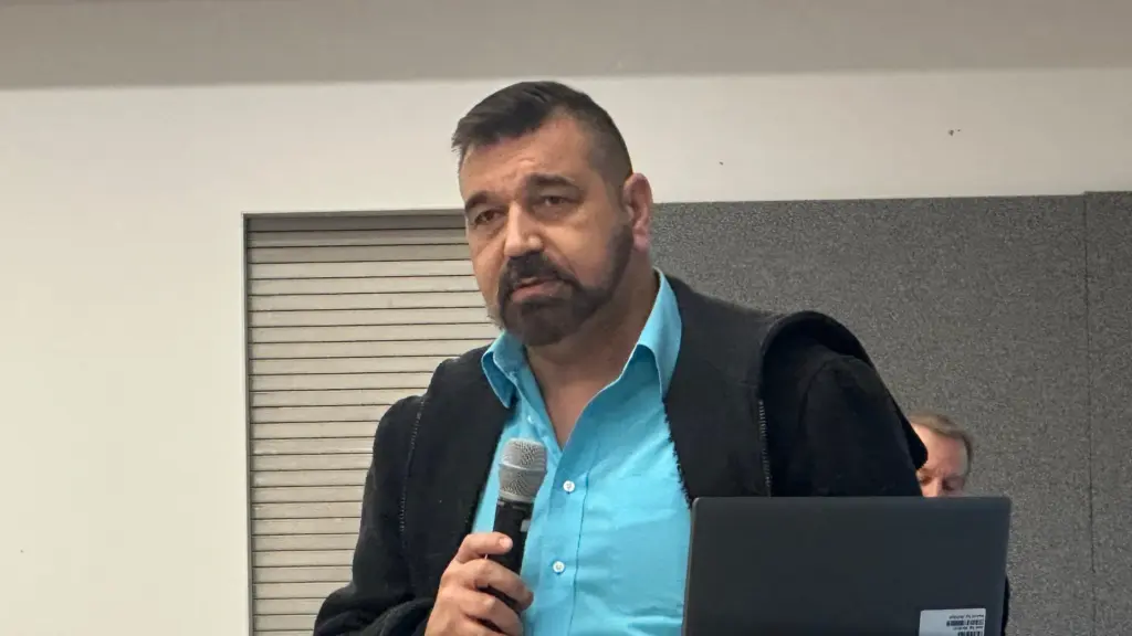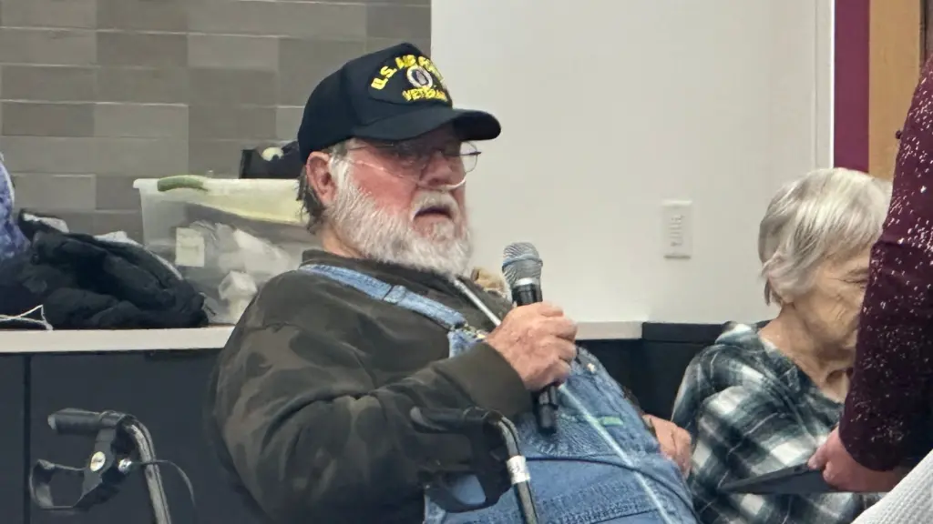 Pettis County resident Fred Peters spoke in opposition to a proposed landfill outside La Monte, during a hearing hosted by the Missouri Department of Natural Resources on Monday, Dec. 15, 2025 in Sedalia. (Photo by Kyle Hill, KMMO News)