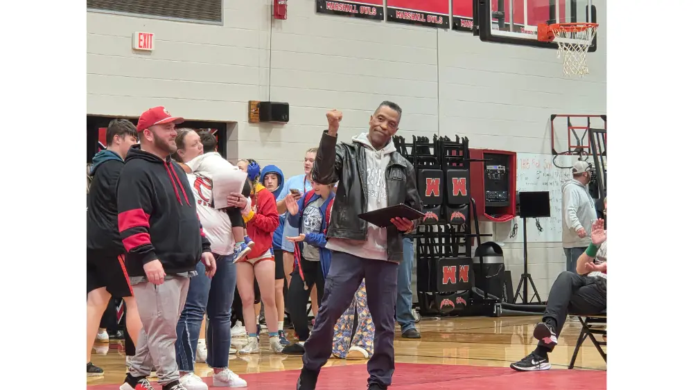 The Marshall Wrestling Alumni Club (MWAC) also recognized its two new Hall of Fame Inductees and presented its scholarship awards during the event. This year’s inductees were Mitchell Stephenson and Jim Johnson. Stephenson was state champ in 1991, and Johnson placed 4th in 1975 and was Marshalls first 100 match winner. MHS Seniors Hayden Igo and Olivia Martin were then named the MWAC Scholarship winners.