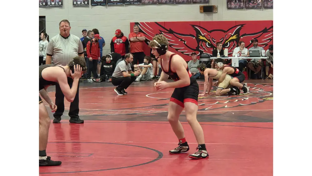 Marshall’s boys team came in 12th out of 23 teams, recording 56.5 team points. For the Owls, Levin Duncan secured a third place finish after defeating Grandview’s Anthony Cole by fall at 215 pounds. Nolan Igo finished in fourth at 138 pounds.